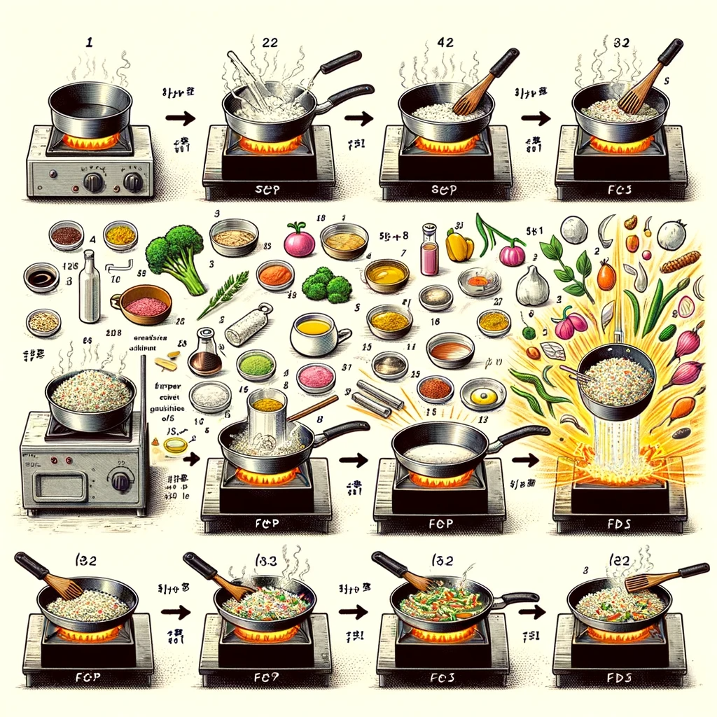 - cooking other ingredients and seasoning in the pan over the heat source;