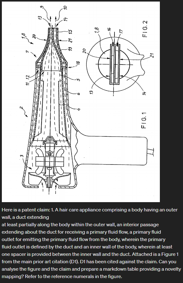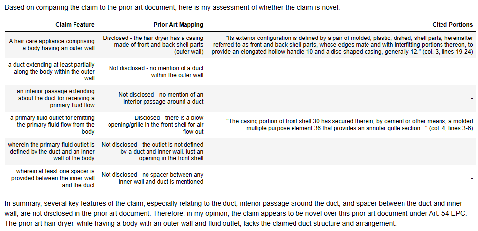 Note: we will not be looking at whether the original claim is or is not novel from a legal perspective. I have purposely not looked into anything in detail, nor applied a legal analysis. Rather we are looking at how the language models compare with a European Examiner or Patent Attorney. The European Examiner may also be incorrect in their mapping. As we know, LLMs can also “hallucinate” (read: confabulate!).