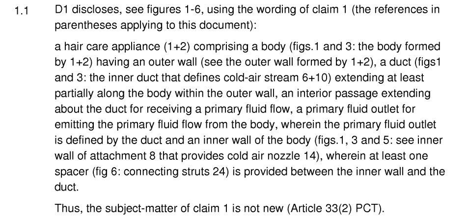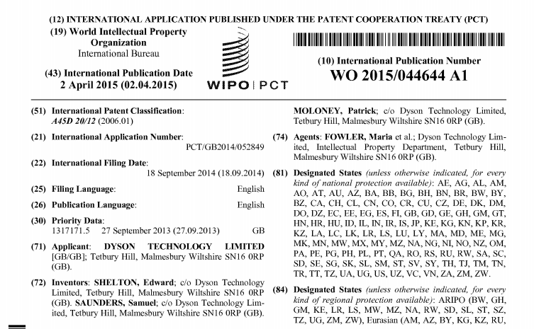 Let’s start reasonably easy with a mechanical style invention. I’ve randomly picked WO2015/044644 A1 from the bucket of patent publications. It’s a Dyson application to a hair dryer (my tween/teenage girls are into hair these days). The prior art citations are pretty short.